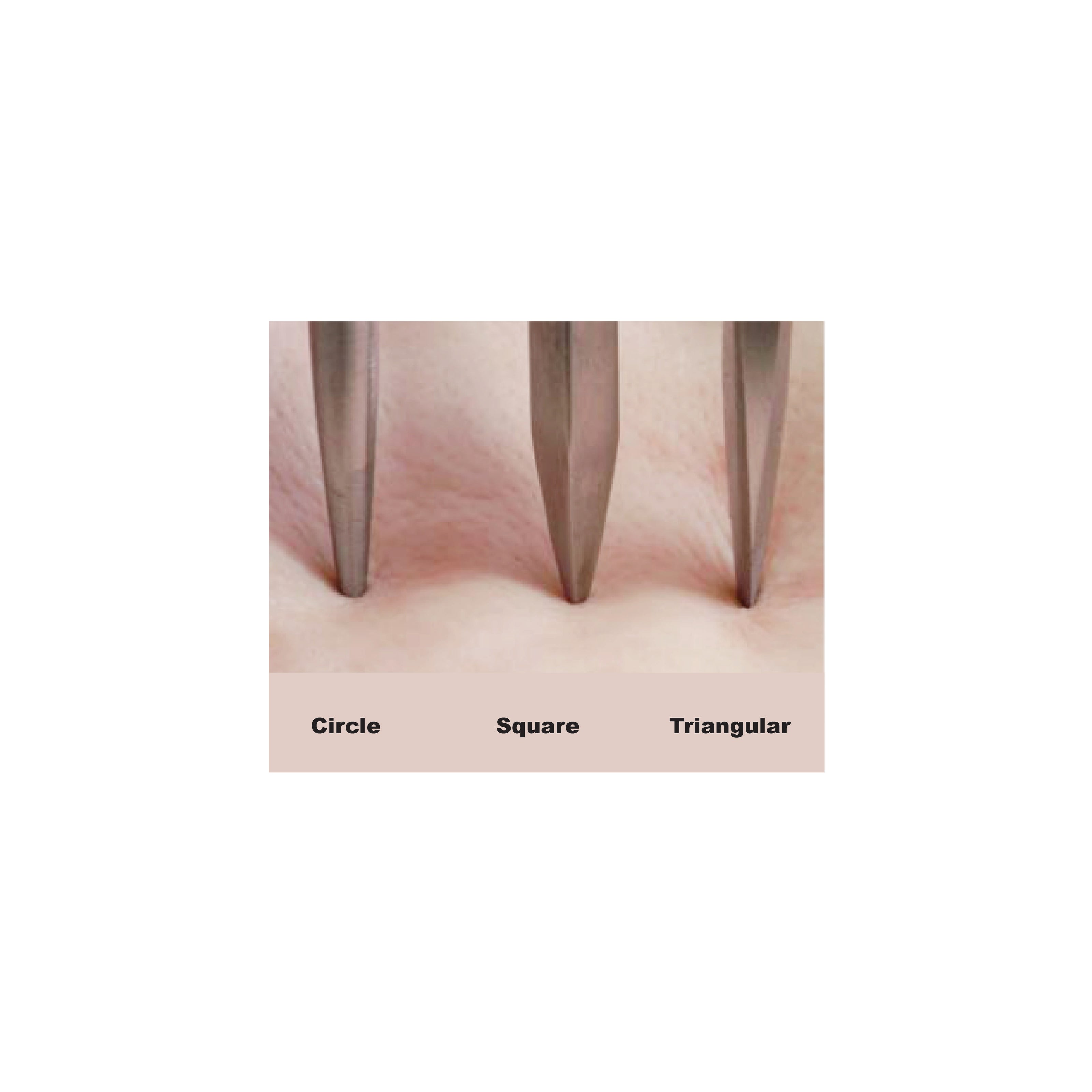 Skin punctured by each type of needle